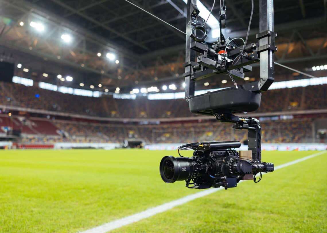 تقنية Spidercam تعمل من خلال تعليق كاميرا على أسلاك مع أربع نقاط ربط مرتفعة لتغطية كامل الملعب. وتوفر كاميرا بث عالية الدقة أو 4K مع تكبير آلي ورأس مثبت بتقنية الجيروسكوب، مما يقدم صورًا سلسة وغامرة.
