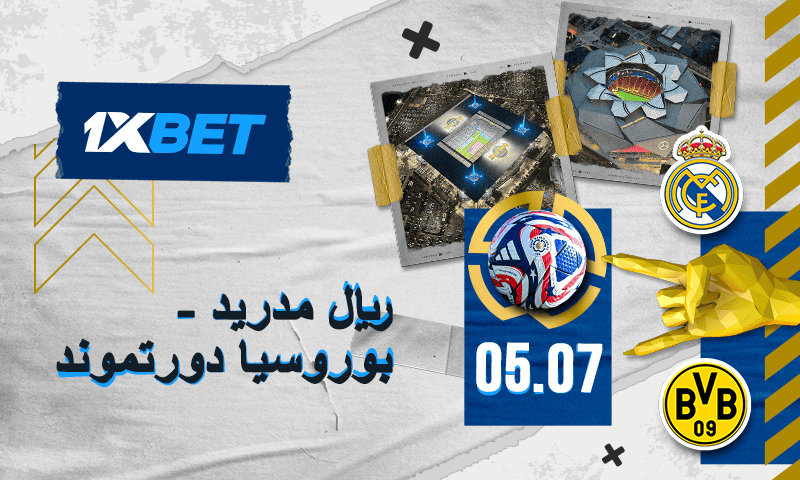 في 5 يوليو، يلتقي ريال مدريد وبوروسيا دورتموند في مواجهة نارية ضمن ربع نهائي البطولة الصيفية. شركة 1xBet تقدم لك لمحة كاملة عن المباراة، مع أفضل الفرص للمراهنة على الفريقين في هذه المواجهة المثيرة.