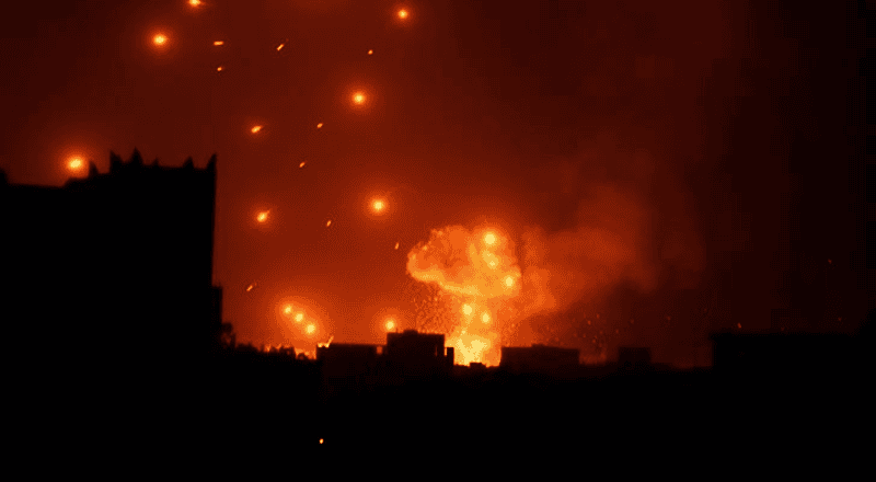 ووفقاً لما أفاد به موقع “العربية.نت”، هزت العاصمة اليمنية صنعاء انفجارات عنيفة بعد تنفيذ الطائرات الأمريكية ثلاث غارات جوية على مواقع تابعة للحوثيين جنوب المدينة، فيما طالت أربع غارات أخرى معسكر “براش نقم” بالعاصمة.
